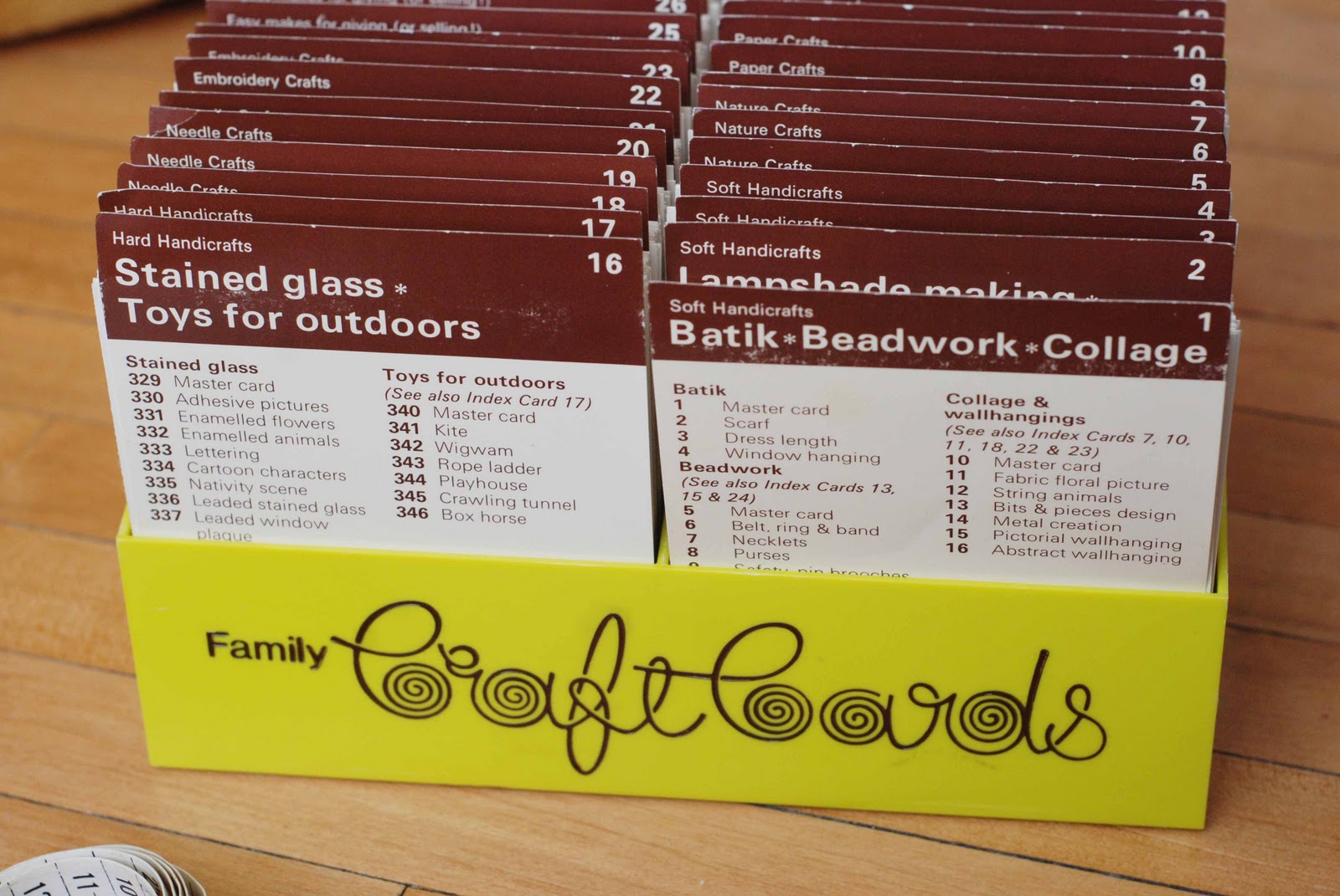 Last, I found this.. And I would LOVE to know more about them if anyone knows anything.. Theres a total of 164 crafts (and after some researched I found out thats a complete set!). Theres SO many random ones in this box.. Its published in 1976 (cards say 1975 but later found out it was only in '76).. The cards are in great condition, and are organized perfectly.